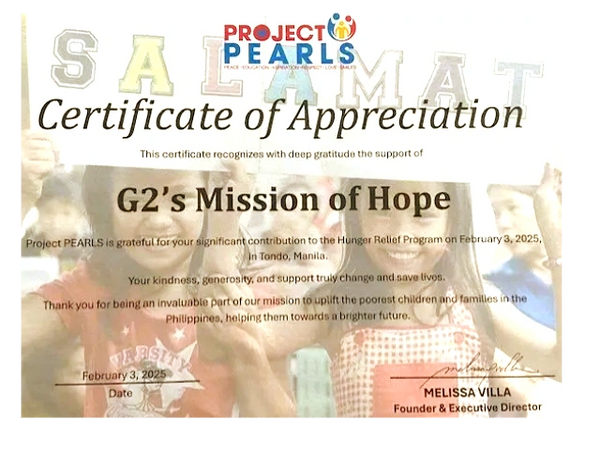 G2 Business Solutions & the Founder (Melissa Villa) and Board Members (William & Marcy Brandenburg) of Project Pearls.